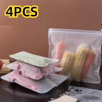 Silicone Reusable Food Storage Bags – Stand-Up Leakproof Lunch & Fresh Food Containers with Zip Closure
