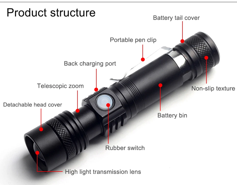- 1 × LED Flashlight (Battery not included)