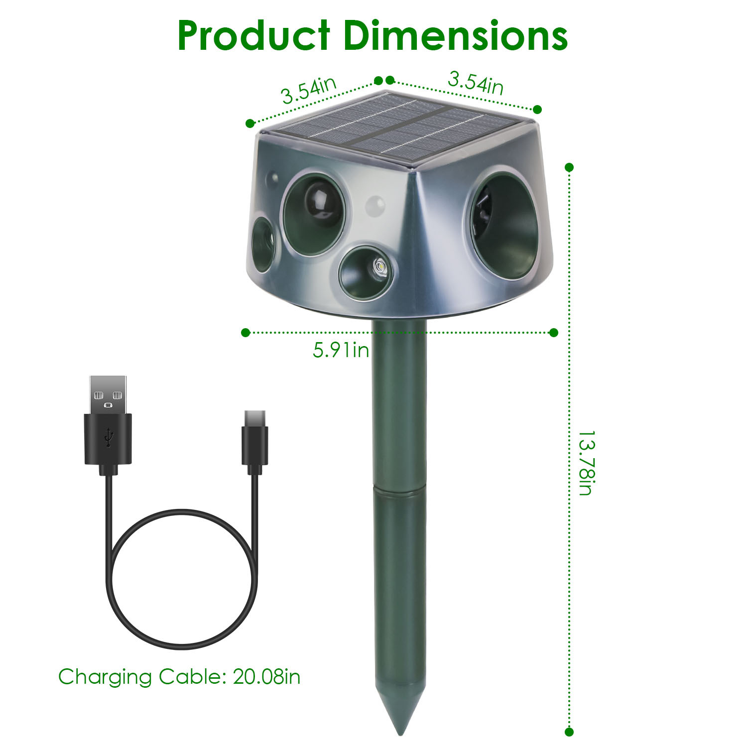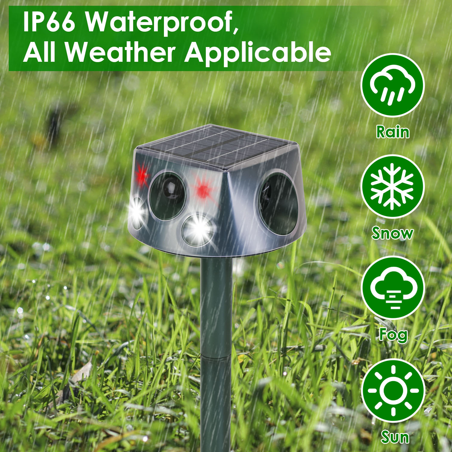 - Product Type: Ultrasonic Solar Animal Repeller